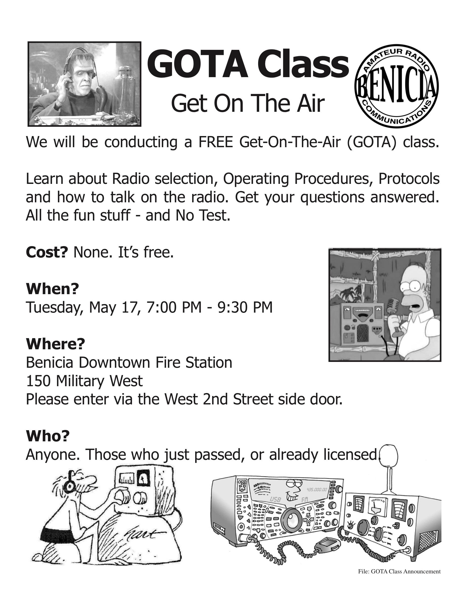 GOTA (Get on the Air) class- May 17, 7:00-9:30 PM
